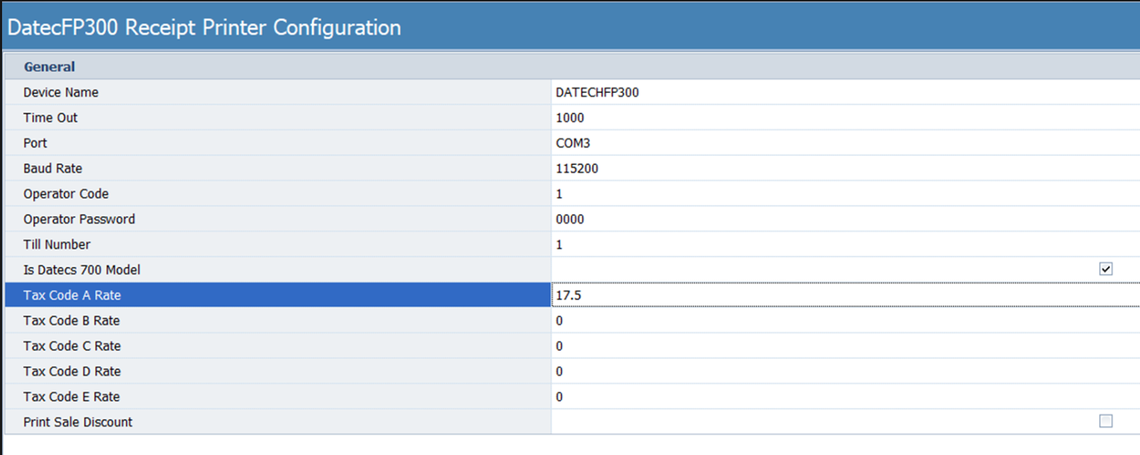 Datec Fiscal Printer Error “Tax Rate Not Found” After VAT Rate Change