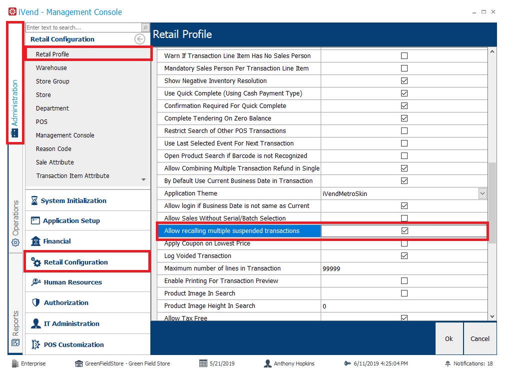 Now navigate to Retail Configuration > Retail profile > Transaction Screen Settings.