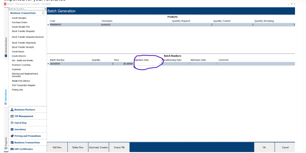 is it Possible to import Batch Expiry Date on GRPO Batch Creation in iVend ?