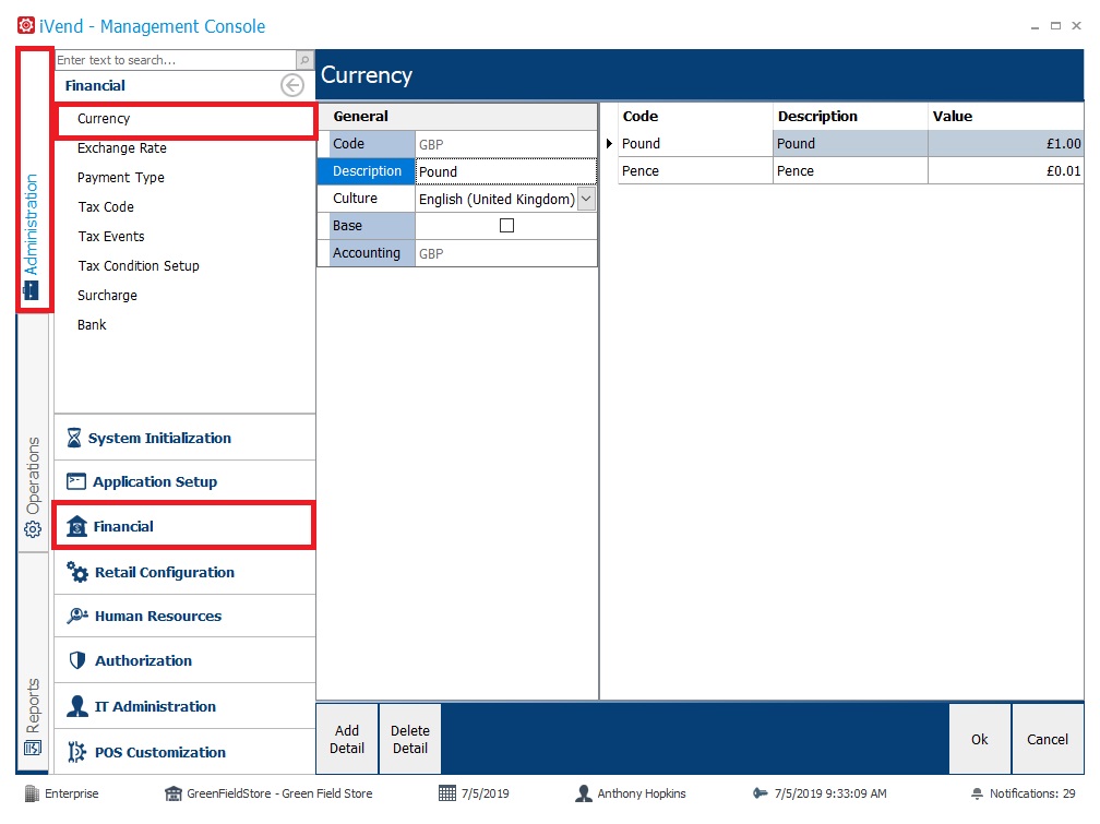 Let us assume that Cashier would like to hand over the same currency as paid by the Customer at the POS in the previous transaction shown earlier in this article, i.e. Great British Pounds.