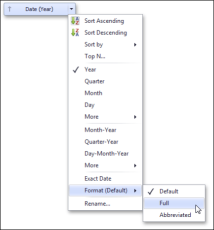 Exact Date | Each value is displayed "as is". | 2009, Q2 2009, 6/15/2009 1:45:30 PM, ... |