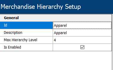 2. In our example, we will create four (4) levels for our Hierarchy. You can go up to 15 levels. Also check the box, Is Enabled.