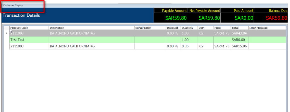 The customer wants to customize the "Customer Display" screen. Below is the screenshot for the same: