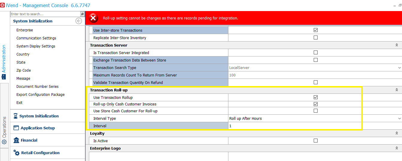 Unable to active Transaction Roll-up in IVend