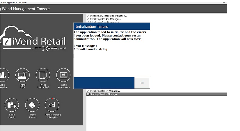 While login to MC getting the error “Invalid vendor string” as shown below: